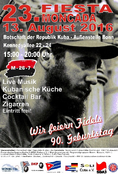 Verehrter Comandante en Jefe, lieber Fidel, Wir, das Netzwerk Cuba, Vereinigung von über 40 Solidaritätsorganisationen aus der Bundesrepublik Deutschland, möchten uns mit unserer bescheidenen Stimme in den mächtigen Chor einreihen, der Dir zu deinem 90ten Geburtstag gratuliert. Wir freuen uns … Weiterlesen →